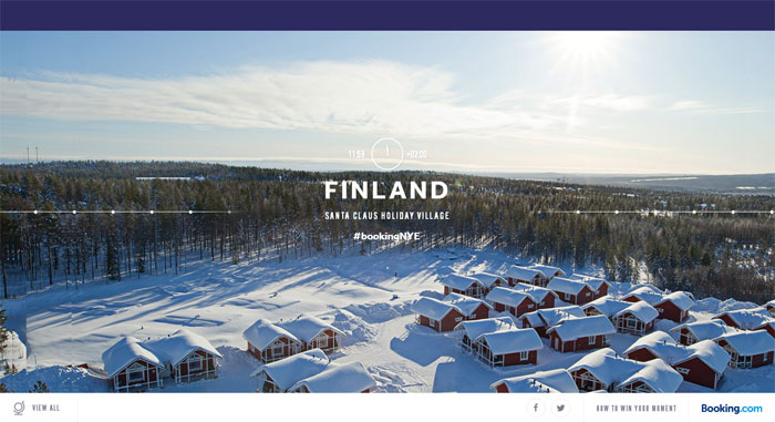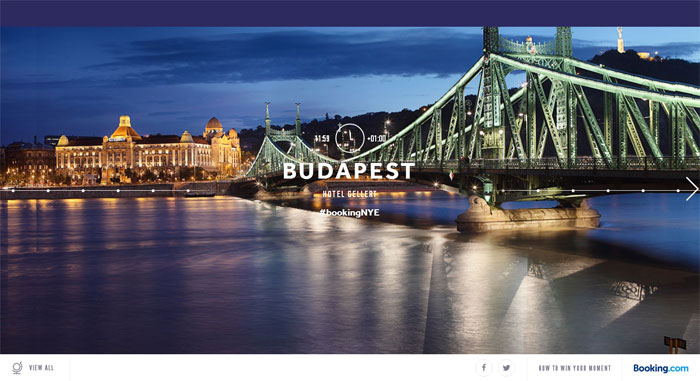 這家專門做酒店預(yù)訂的網(wǎng)站,在首頁為用戶展現(xiàn)了不同地區(qū)、不同國家的人文風景,而且會隨著用戶鼠標的點擊、滑動來進行變換,獲得了非常好的用戶體驗。