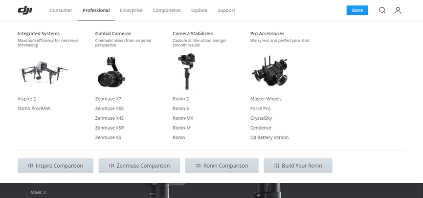 以下面的產品型網站為例,導航欄上不僅對產品進行了分類,而且鼠標展開之后,不僅加入了具體產品的圖片,對每一款產品的特性也做了簡單的介紹,既節(jié)約了用戶的時間,也有效的提升了用戶的體驗度。