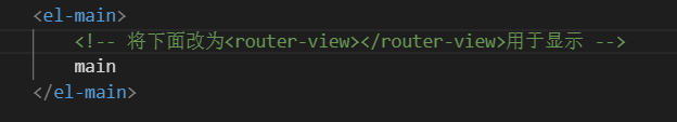 3.在需要展現(xiàn)頁面的位置添加<router-view>標(biāo)簽,用于展示頁面。這里為了在main中展現(xiàn),所以需要將<router-view>標(biāo)簽設(shè)置在<el-main>中,如下圖: